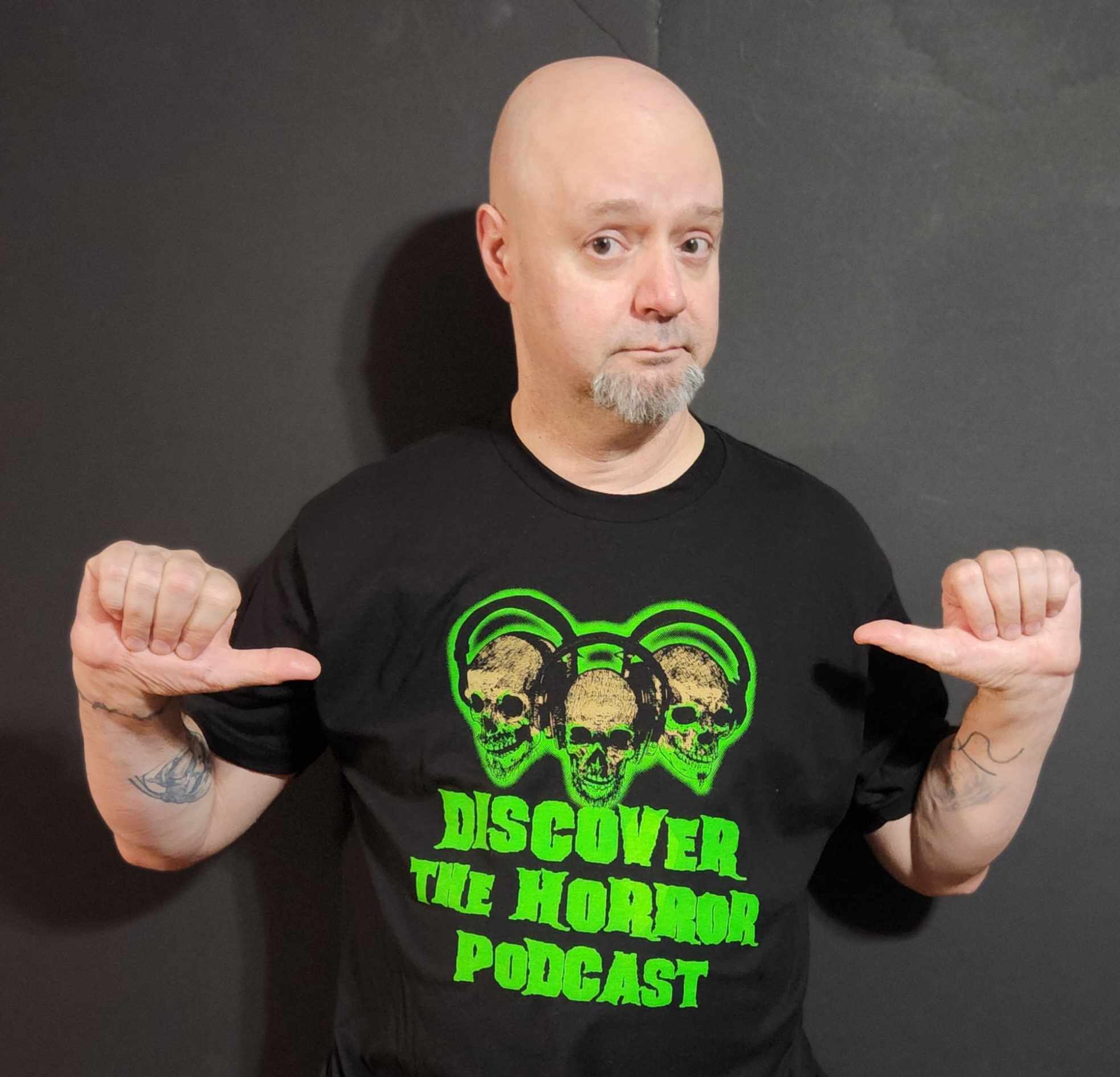 We have teamed up with our good friends at Pallbearer Press to now offer our listeners the official Discover the Horror T-Shirts! As you can see below, it has our logo in bright green to show your support for us!